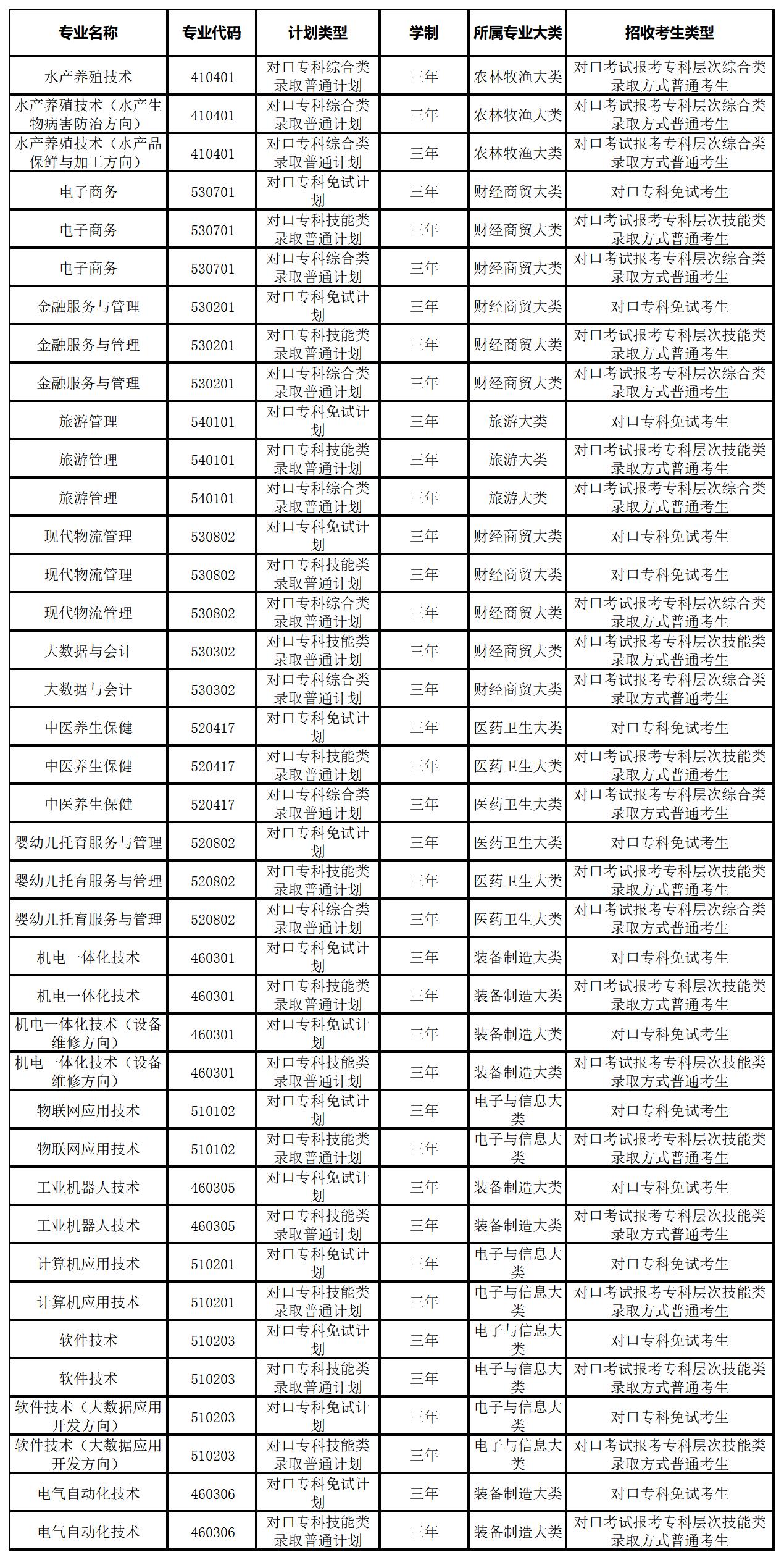 类型三:对口考试报考专科层次免试考生(以下简称对口专科免试考生);