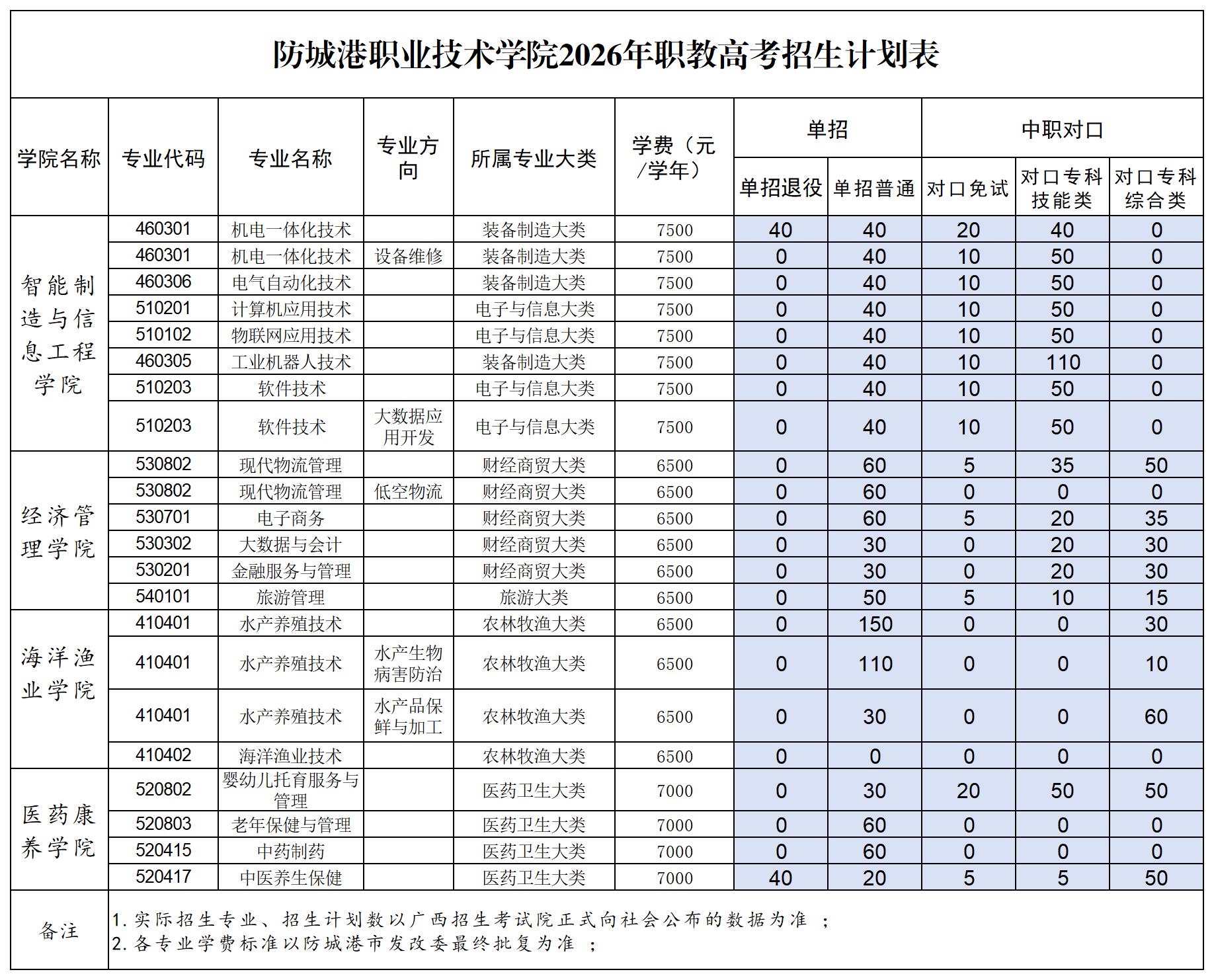 防城港职业技术学院2025年分类考试分专业投档最低分